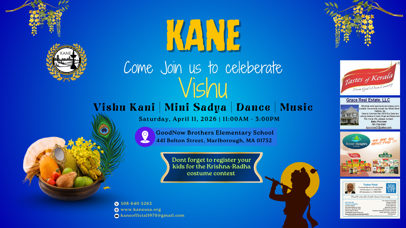 KANE was founded back in 1970 and we still have few people from 70s team in our current team. We embrace our great legacy with extreme honor and welcomes new members to lead our organization. You become a part of the largest and one of the oldest Kerala Associations in the United States. You get discount at several events and shows that KANE organizes every year. You get discounts at local stores and restaurants. You and your family gets up-to-date information on KANE's events and shows.