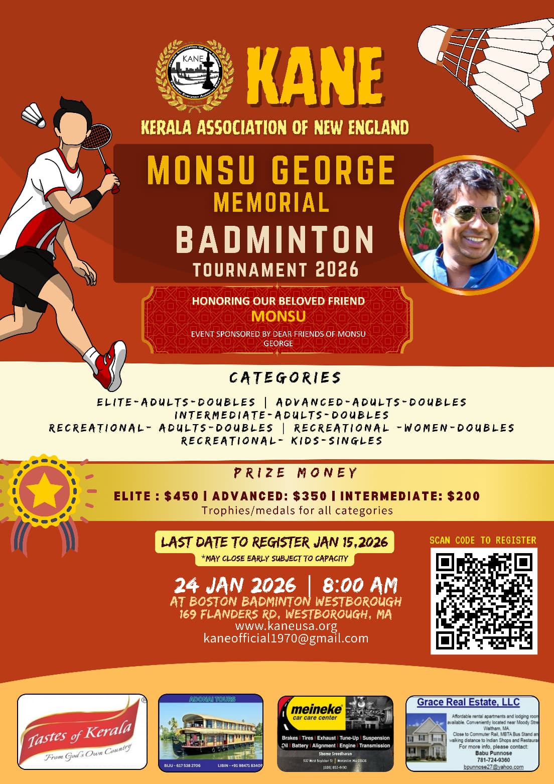 We look forward to seeing you join us at the KANE Badminton Tournament on Saturday, January 24th at the location: